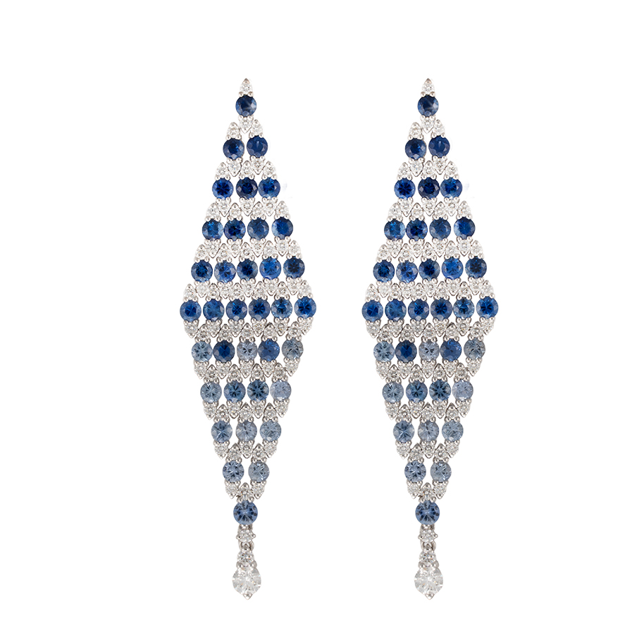 Ohrringe aus Weissgold mit Diamanten und Saphiren.