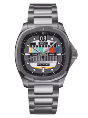 Die MIDO Multifort TV Big Date bringt eine ikonische Form zurück auf die Bühne. Das markante, vom Vintage-Design inspirierte TV-Gehäuse verleiht der Uhr eine starke visuelle Identität und verbindet Tradition mit moderner Dynamik. Das ausdrucksstarke Zifferblatt wird durch die charakteristische Big-Date-Anzeige bei 12 Uhr geprägt und sorgt für eine klare, unverwechselbare Präsenz am Handgelenk.