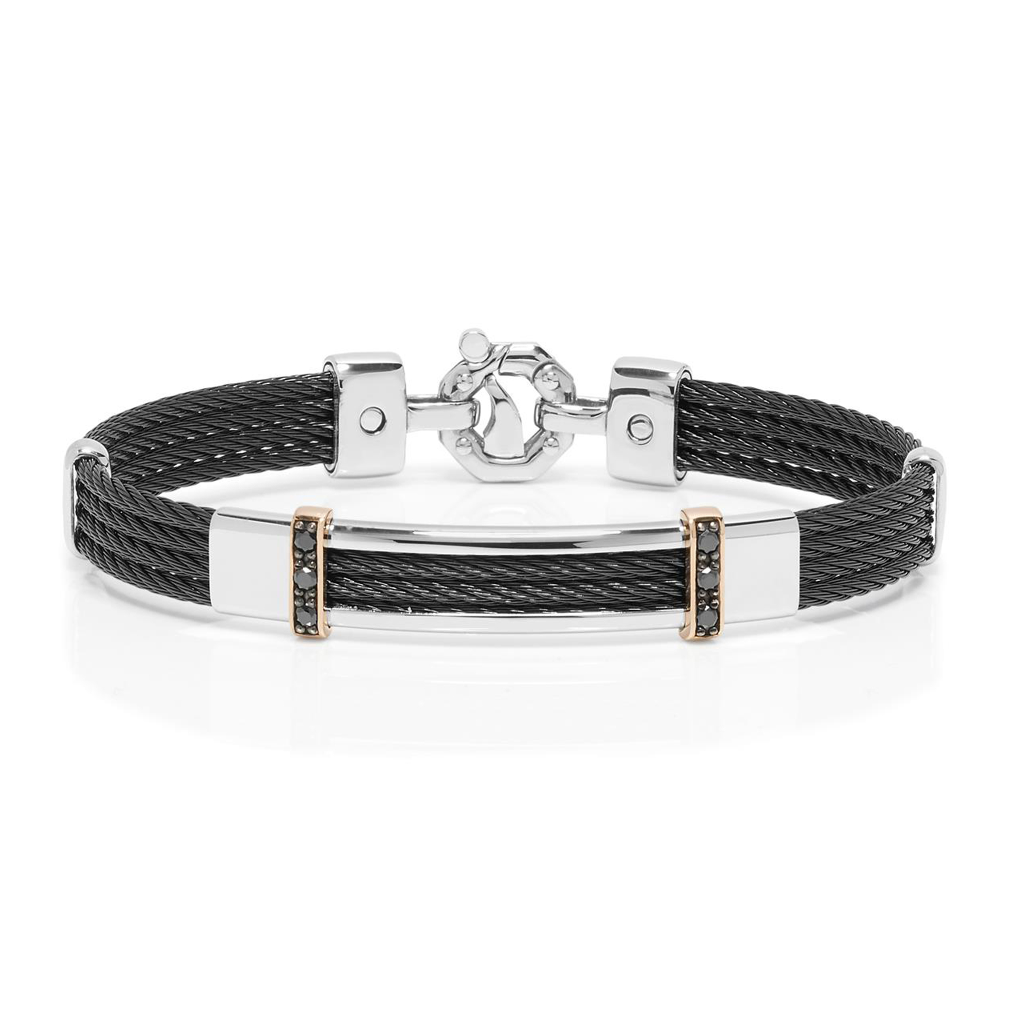 Il bracciale da uomo Barakà si distingue per la sua eleganza moderna e il design deciso. La combinazione di oro rosé 750‰, acciaio e dettagli neri conferisce al gioiello una presenza distintiva.